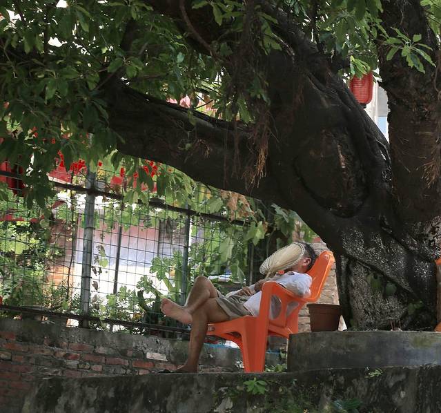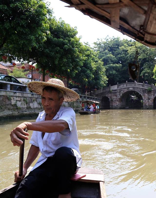 乘上小船,30分钟的水路几乎就可以走遍了整个村庄,缘溪而行,老人盖着蒲扇在古树下乘凉打盹。