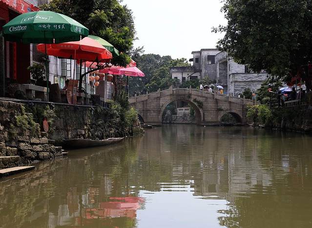 这里是典型的岭南水乡,建于不同年代的桥,形态风格自然也迥然不同。其中最有名的是明远桥,明远桥是中国现存最早的三孔石桥之一,始建于南宋宝庆年间,桥拱成纵联砌置法,红色砂岩结构。桥栏石板刻有各种图案,桥两边柱头雕有石狮子,为了方便马车通行,桥面的石级砌成坡形。