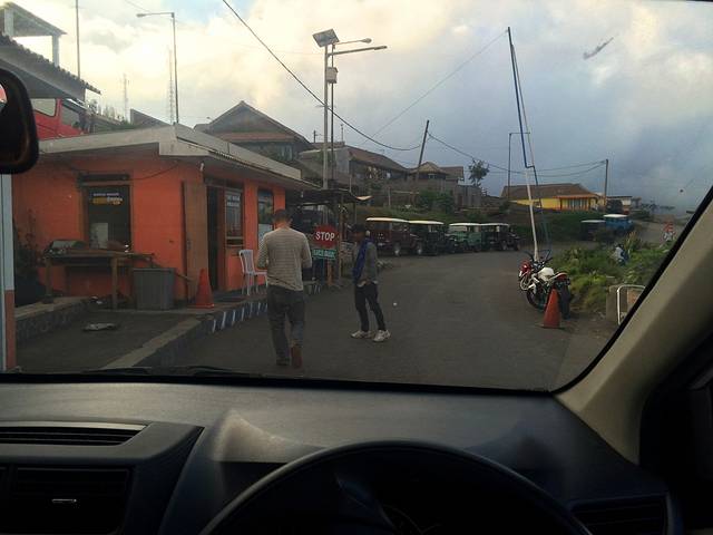 到了一个关口,Doni说是进入Cemoro Lawang的过路费。还在无语进个村庄也需要门票,Doni已经回来了。看来有个当地人就是好,省去了很多的麻烦。Doni这时才和我们说他把我们住宿的地方换去了那个有名的Cafe Lava Hostel.