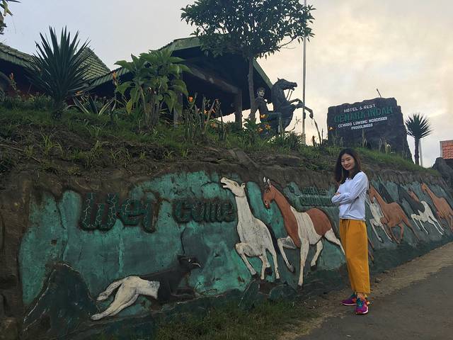 沿着公路y字路口的右半段走,走到尽头就是一家风景最好的民宿Cemara Indah,这几匹马就是它的标志。它直接建在山边,估计打开窗就能看到布罗莫。