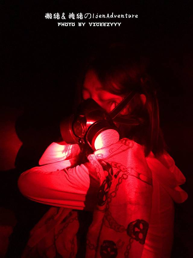 终于来到了转换站。这里是一个小木屋,门口有秤,是给那些挑硫磺的挑夫称重用的。这里已经可以闻到了硫磺味,感觉就像是过年晚上放完烟花爆竹后的味道。我有点不太适应,直接被呛的咳嗽了。于是向向导租了两个防毒面具,Rp50,000一个。真的非常重要啊!等下到了火山口那味道非常的重,用普通口罩或者Pm2.5的都没什么用。