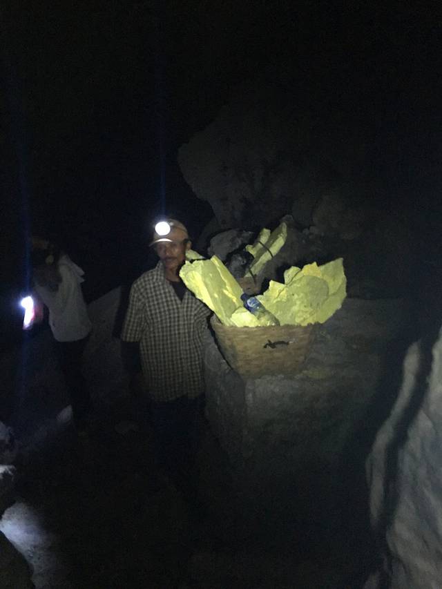 在这里看到了第一个硫磺挑夫,我们主动让开了道路让他过去。
