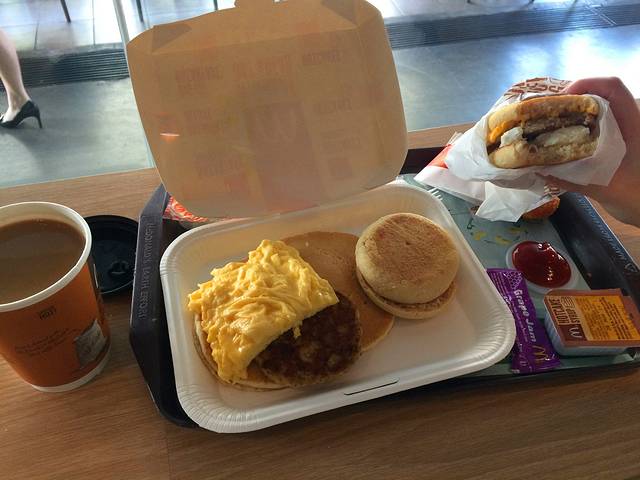 5月3日,天气晴朗,万里无云。记得以前每次的出行都是天还没亮就往机场赶第一班航班,为了节省出行的时间,然后草草地在机场里吃那个最难吃的马来卤面和咖椰面包(懒猪还吃的津津有味)。这次不同了,我们是10点50的飞机。于是,8点轻松出门,附近找了家麦当劳,享用了一顿完美的早餐,不得不说mc的早餐是超出了一家快餐店该有的水准。我和懒猪说,印尼的食物我们上次也见识过,那些路边食物是需要勇气去吃的。这次包里带上了足够的干粮,所以早上吃吃饱,到了泗水我们就赶路去火山了,没有中饭吃的。懒猪眼巴巴地点点头,因为每次出行,她总是会不停地叫肚子饿。