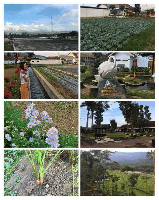 这里吃晚饭有且仅有一家餐馆。而且Doni说需要预约。只有一种餐,每个人Rp60,000的样子。我们预定了6点的,可是发现周围除了种植的蔬果外,没有什么可以兜的。而且从这里Doni说到宜珍山脚还有40分钟的车程,在这根本找不到那座山是火山。于是我们提早回来和他们说吃饭时间能不能换到5点后,就坐在大堂里收Wifi上网。