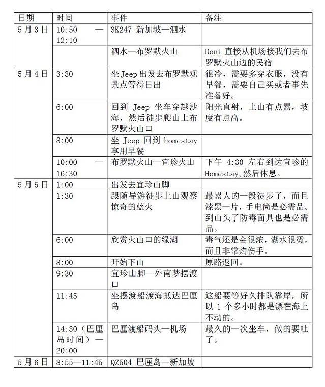 这次的主要计划就是去探索布罗默和宜珍这两座活火山,加上前前后后要参加毕业典礼等事情,所以只安排了3天半的样子。而且事先找好了当地的司机,带我们这个3D2N之旅,保证没有差错。