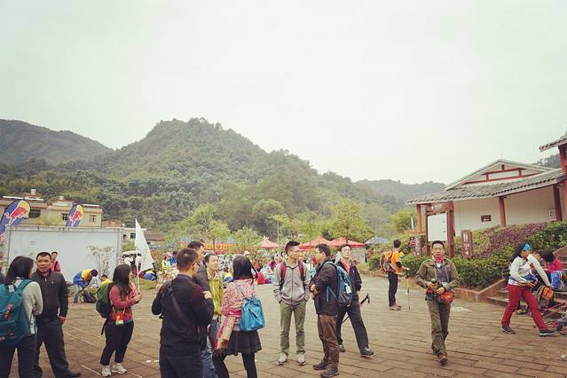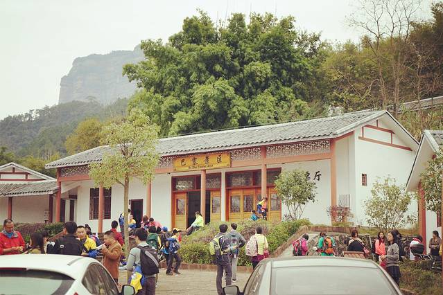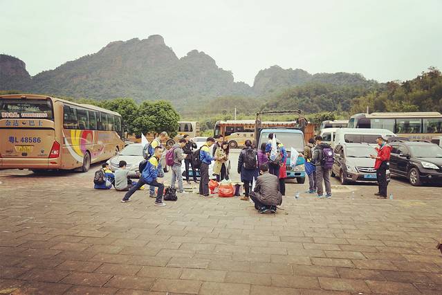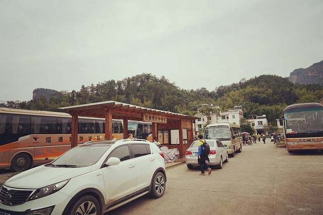 12点左右。大巴来到韶关,很快就看到了丹霞山景区的入门。不过巴寨景区并不在这里,还有一段车程。终于,在12点半左右,我们来到了巴寨景区的停车场,大家带齐装备,下车!