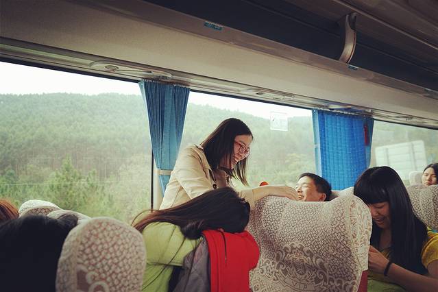 按照每次户外活动的惯例,等到了几个找错地方的团友后。大巴在8点15分左右,终于启动了。