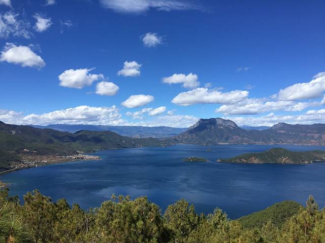 从机场出来,前往泸沽湖路上,有一观景点,俯瞰湖景全貌