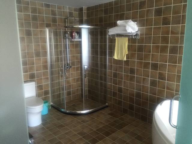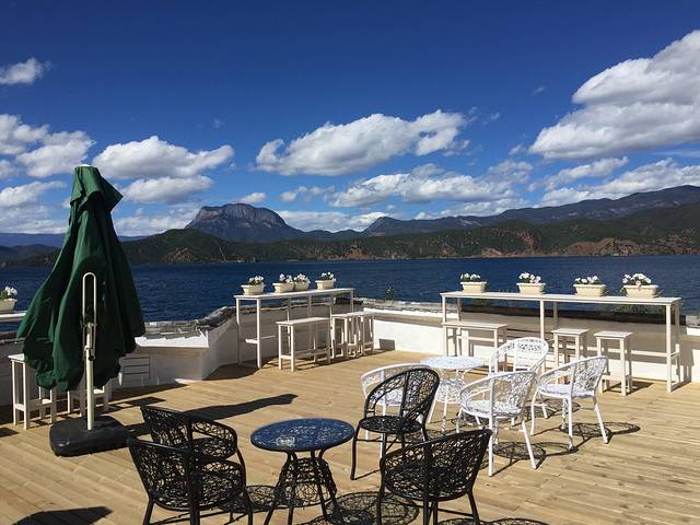 酒店顶层平台,这家客栈是新开张一个月的,在湖的南边,相当于从机场过来的路,进入环湖公路后,很快就到了,优点是安静,缺点是周边没什么吃饭的,租车的几乎没有,住宿建议住在码头附近的,比如大洛水,里格什么的,里格相对远一些。
