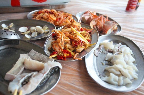 但是这个自助我个人感觉不是特别好,一个人价格是200,2人是每人150,3人以上每人100。自助是以火锅的形式,其实就是一口锅,用清水煮海鲜,这样的好处是能原汁原味保持海鲜的鲜美。说是自助但是并不是自取,服务员会端一盘一盘的海鲜上来,有虾、螃蟹、墨鱼、各种鱼肉(忘了什么鱼,肉比较老,不是很好吃。