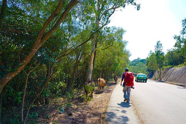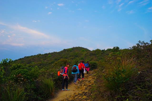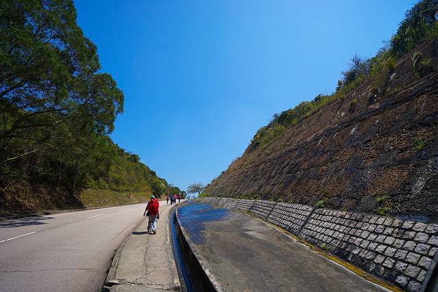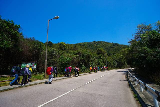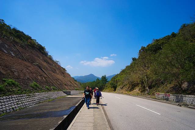 刚开始的一段都是公路,不时有的士从我们身边穿过。刚吃饱,大家都在与困意做斗争。