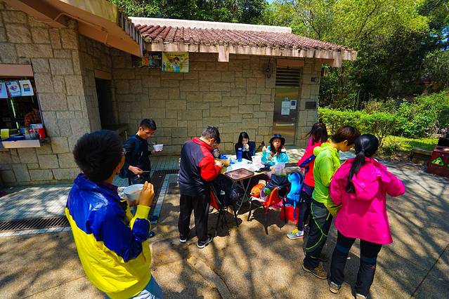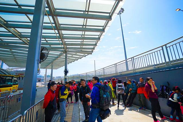 等齐其他小伙伴,我们顺利过了第一道关卡。在等车的时候,看到了另外一个广州户外团的人也到了这里。突然,远处走来一个妹子朝我这边打招呼。我左看看右看看,周围没有其他人,最后确认这个美女是向我打招呼。我觉得对方有点眼熟,从她的名牌知道她叫"Nicole"……走近的时候,她不仅知道我是老袁,还和我旁边的蜗牛打招呼。我和蜗牛两个人只能应付着回应,等她走后,我们想了半天都不知道她到底是谁?最后终于知道,原来她和我们一起在元旦去过石坑崆,真是好巧啊。
