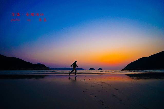 既然看不到日出,照片还是要拍的~海边奔跑的少年~大家注意蜗牛的脚,可都是离地的哦,从倒影就可以看出来。