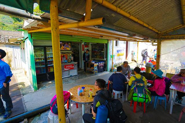 蜗牛水没有带也就算了,居然干粮也没有买。好在这里有士多店可以补充。蜗牛直接要了3瓶水,想备足1.5L。结果没有想到1瓶水是770ml,3瓶水加起来都2L多了,所以,后面他只能默默的全程背着这些负重,最可笑的是最后一天下来一瓶都没有喝完。