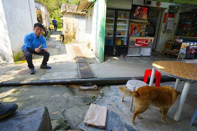 风驰的鱼吃完豆花,就开始调戏店家的狗了。