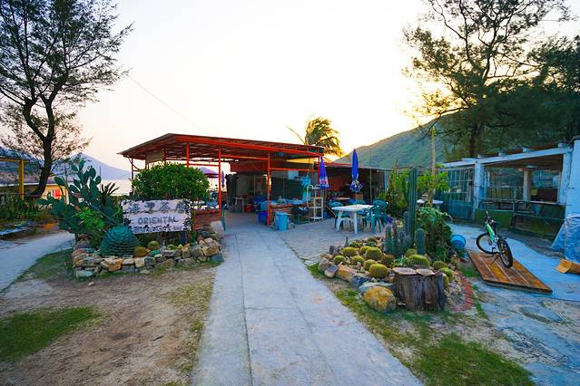 从这里开始,水泥路变成了台阶,大家开始爬坡。我们要翻过一座山,到山另外一侧。好在山并不高,大概15分钟后,我们来到了一处较高的位置,出现在我们眼前的,就是sopihe口中第一个适合看日落的地方—浪茄湾!