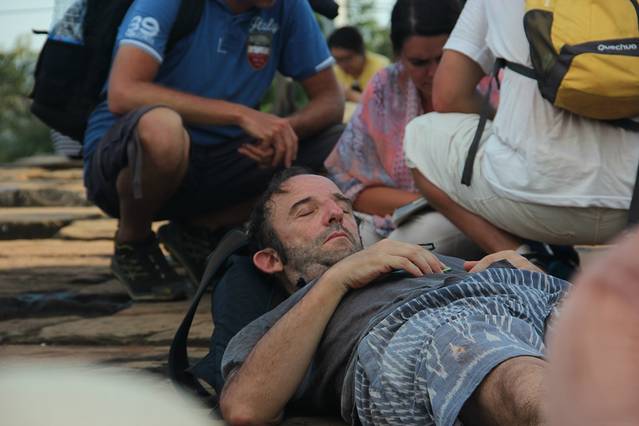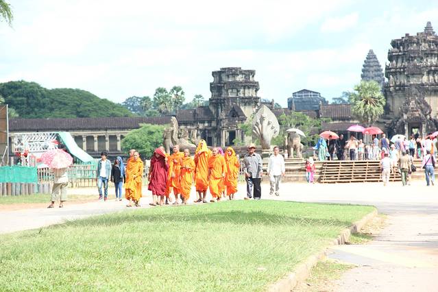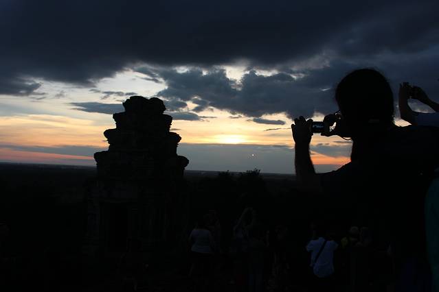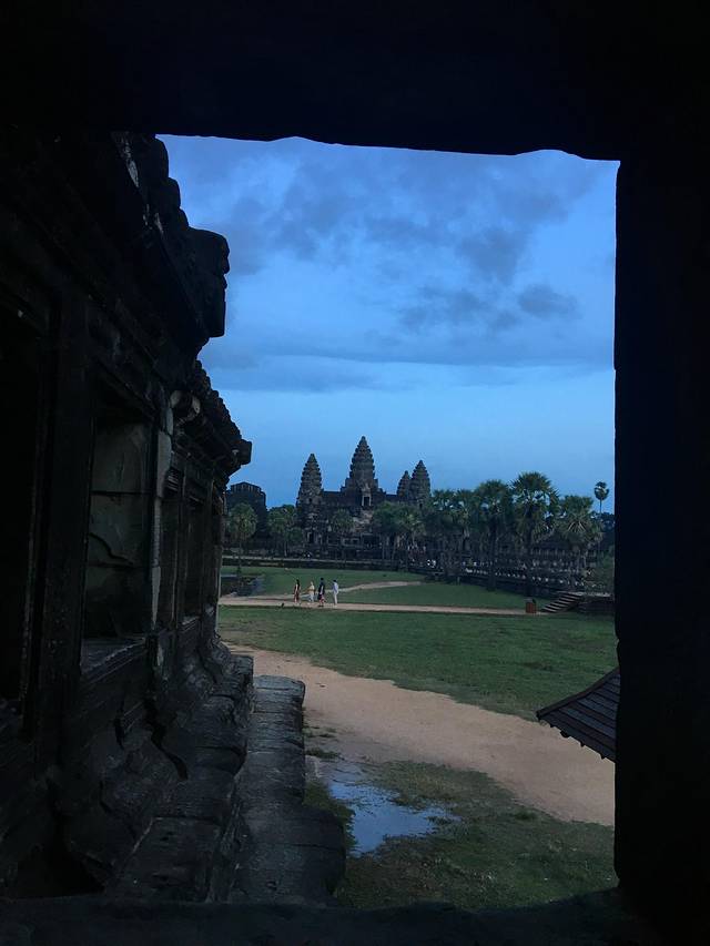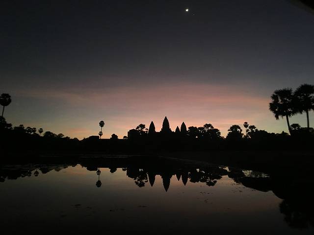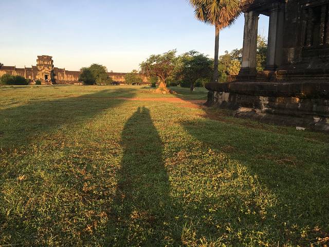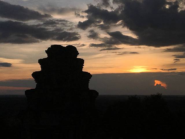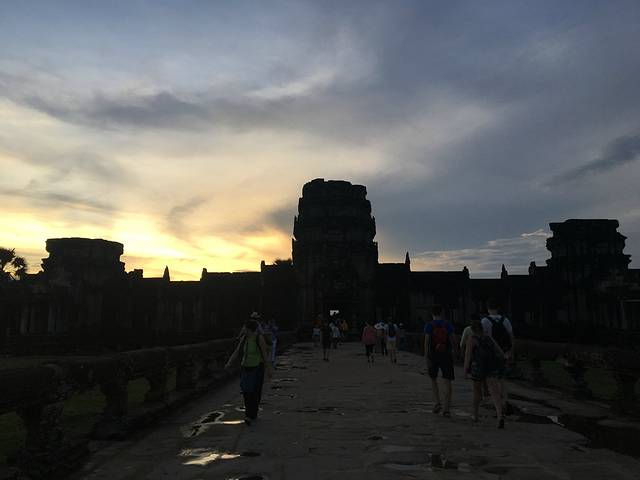 Pete特意送我到吴哥寺看日落,但是当我去到入口处,就觉得不对,因为吴哥寺是在东边,这个时候的日落不是朝着窟的方向,而是背对。而背对吴哥窟是一片杂草树林,没啥可看的。而这天云层比较厚,事实上我在暹粒的好几天都是这样的状况。