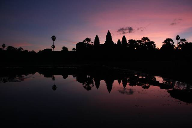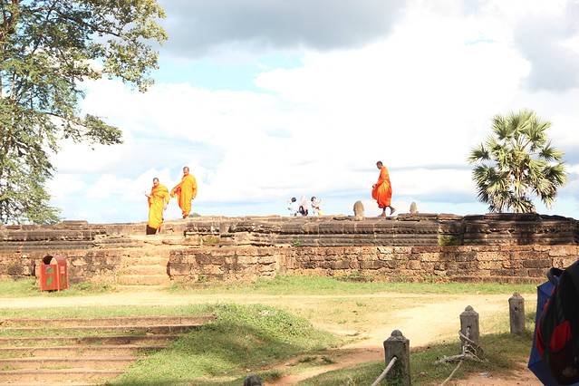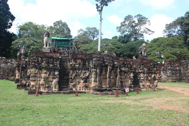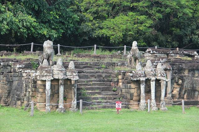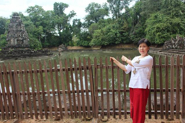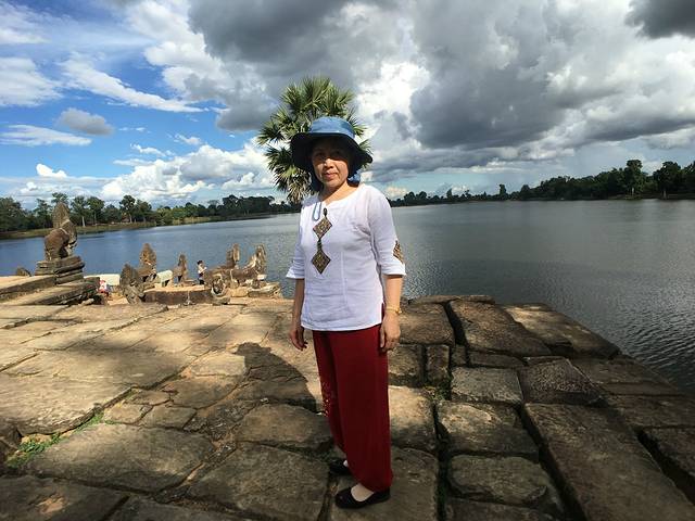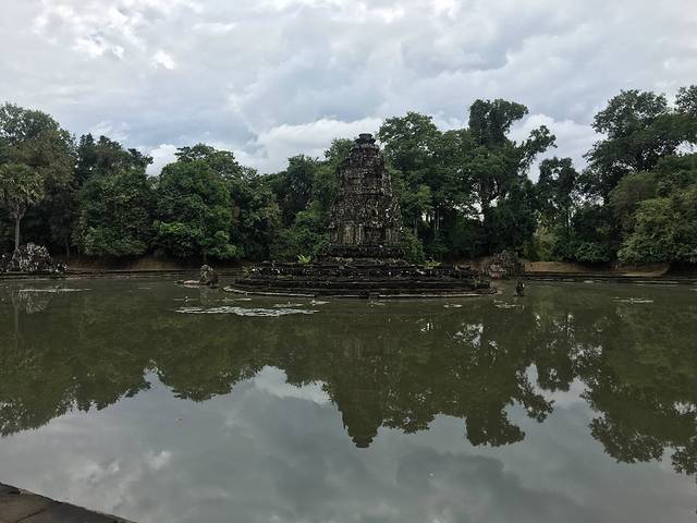 皇家浴池是是举行沐浴仪式的场所,和其它大水池一样,中央原建有一座寺庙,现在只剩石基。吴哥看日出的最佳地点之一,在这里看日出的人不多,而可供作为前景陪衬的水面比小吴哥大很多。当然,没有好镜头的话,也很难拍全。曾经的浴池如今看来更像是一个大池塘,只是不知道里面有没有鱼。池的旁边有一排阶梯,可以坐在这里看看湖面的景色。