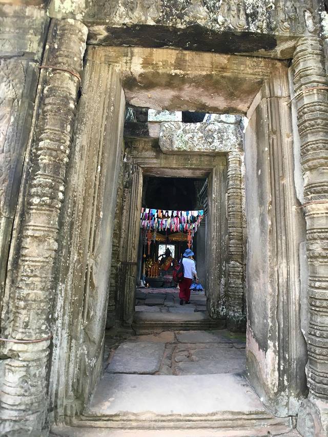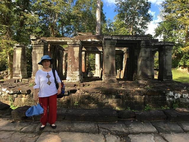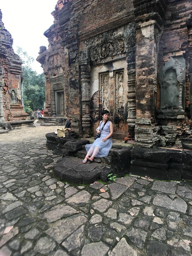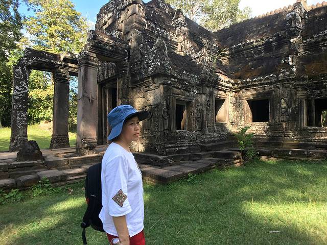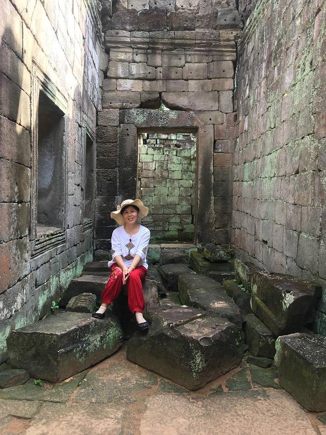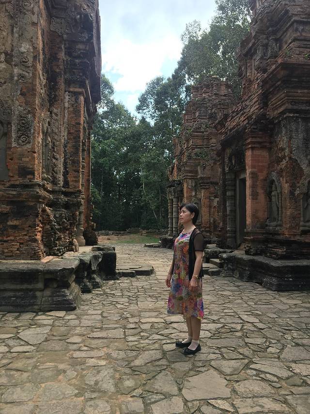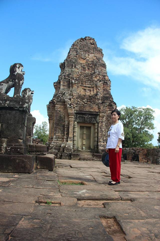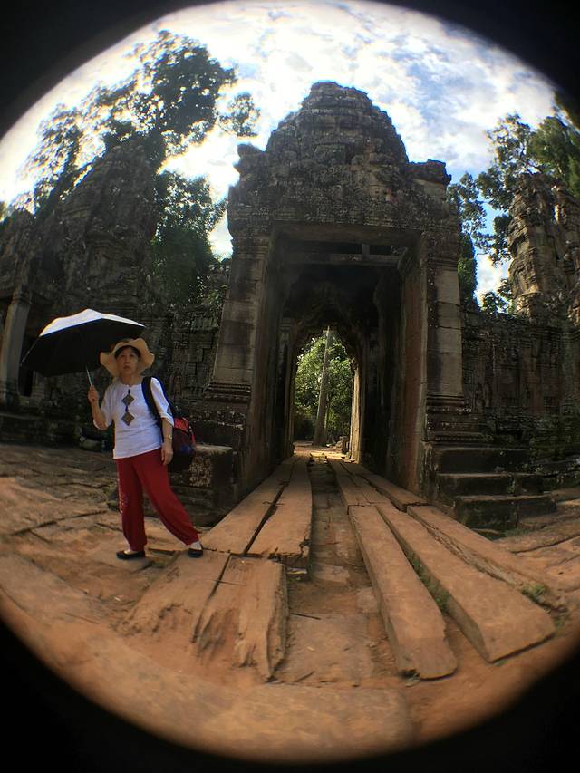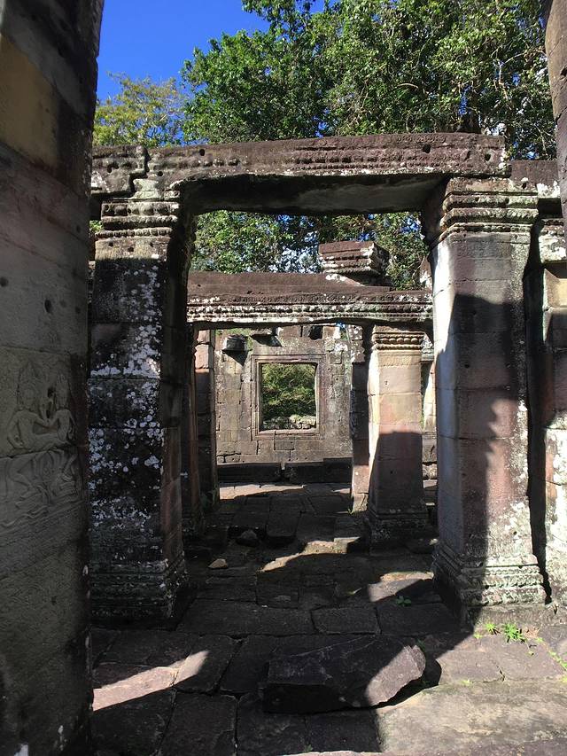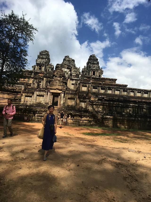 这里又遇到了一位华裔导游。那天在巴孔山就听他滔滔不绝一直讲以前的日子,潮汕的老头特别能说。可能也是他乡遇故知,导游找到这种知无不言言无不尽的人真好啊。看来这个导游带的一个中年男子跟我们的轨迹是一致的呀。老妈逮着老头问门框门柱是不是新秀的,他又说了一通,这里基本是吴哥王朝的开国皇帝建的建筑了,真是古迹中的古迹,离今一千多年,这也算柬埔寨老祖宗留给后人的一笔物质和精神财富了。当时可能真想不到现在穷的揭不开锅的人民还可以通过卖门票来维持生计啊。