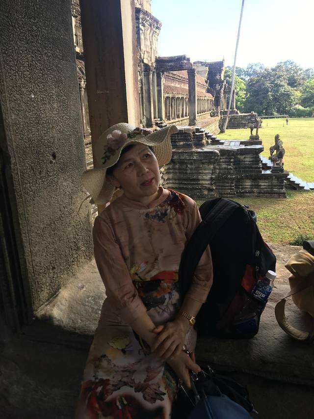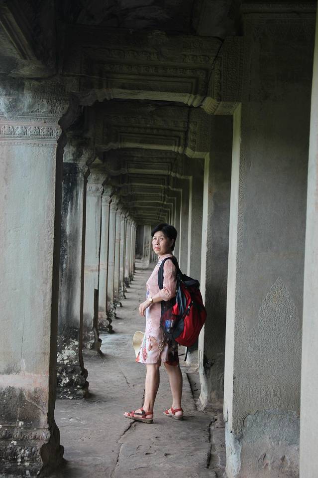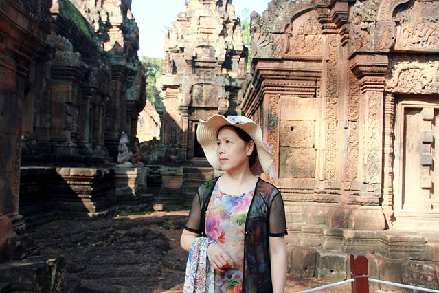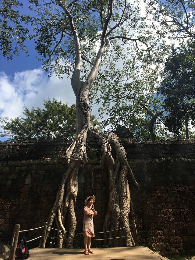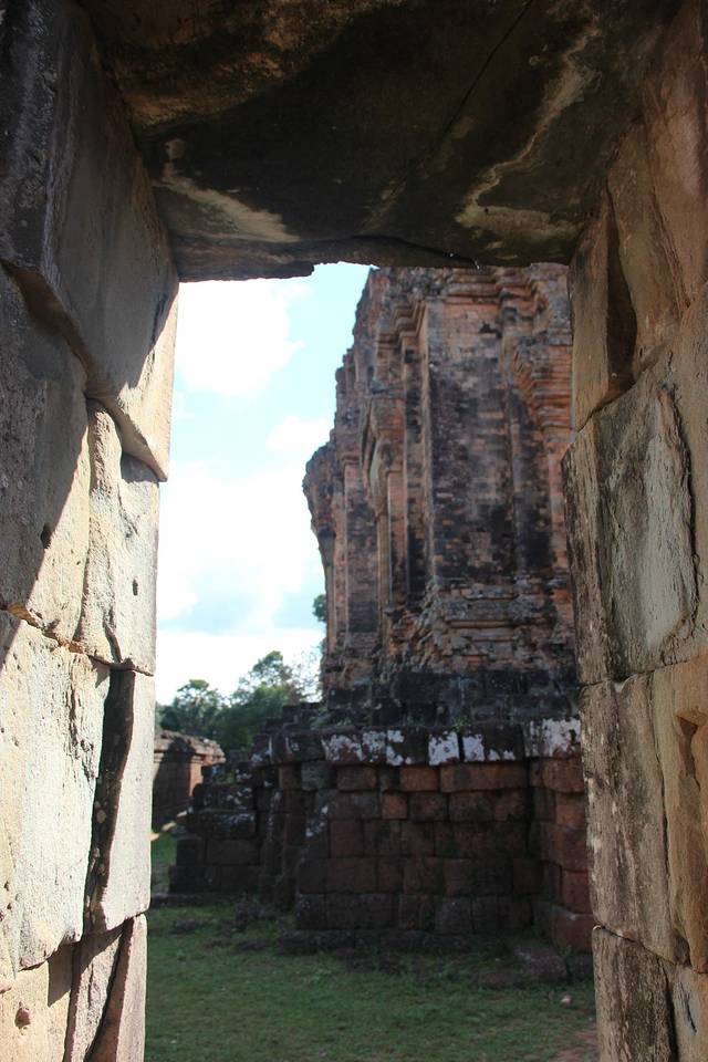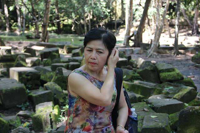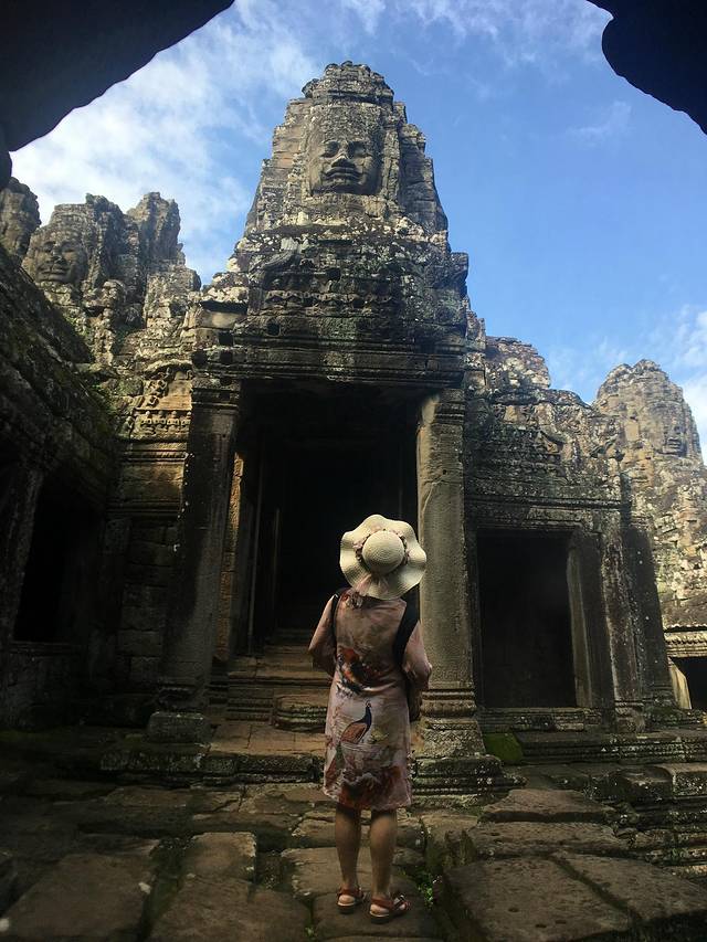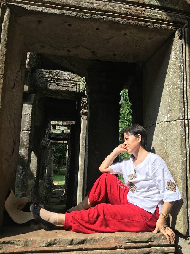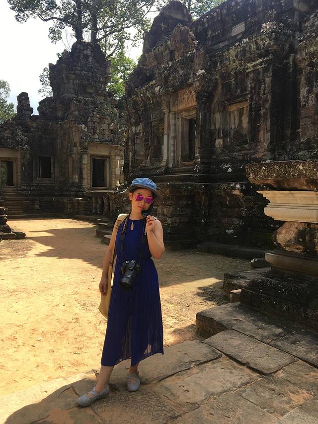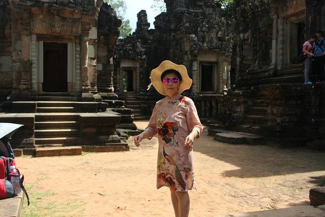 这里又遇到了一位华裔导游。那天在巴孔山就听他滔滔不绝一直讲以前的日子,潮汕的老头特别能说。可能也是他乡遇故知,导游找到这种知无不言言无不尽的人真好啊。看来这个导游带的一个中年男子跟我们的轨迹是一致的呀。老妈逮着老头问门框门柱是不是新秀的,他又说了一通,这里基本是吴哥王朝的开国皇帝建的建筑了,真是古迹中的古迹,离今一千多年,这也算柬埔寨老祖宗留给后人的一笔物质和精神财富了。当时可能真想不到现在穷的揭不开锅的人民还可以通过卖门票来维持生计啊。