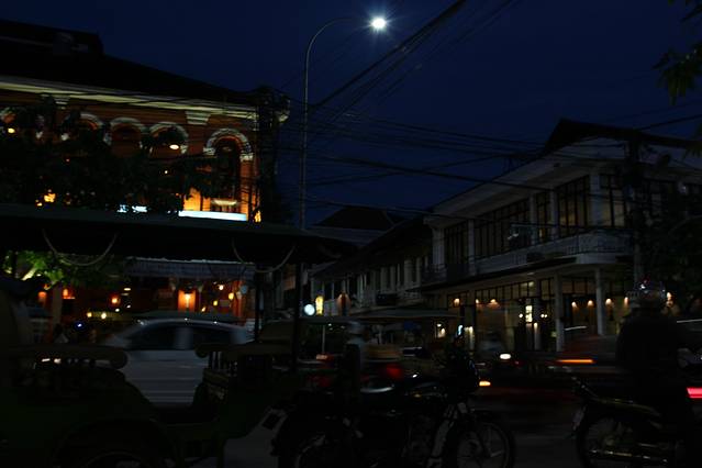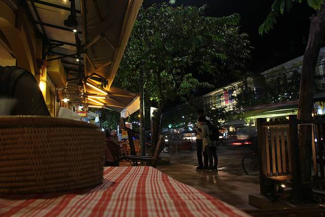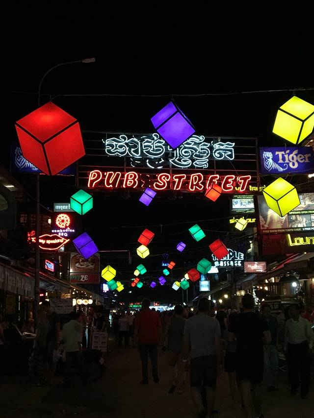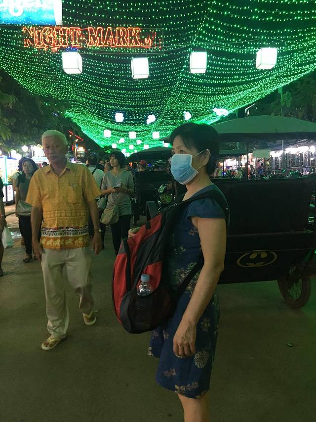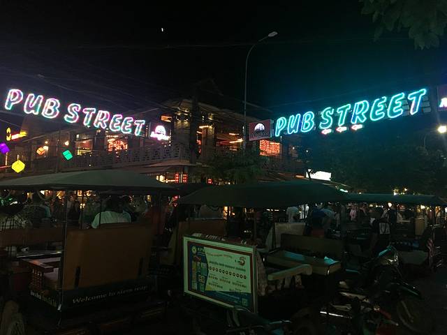 而我们问Pete告诉我们的繁华夜市,最后原来就在老市场、酒吧街的邻街上,卖着一些衣服,还有街边马萨基,大喇叭放着张惠妹十年前流行的《我可以抱你吗爱人》的柬埔寨翻唱版。暹粒城实在是小啊旧啊。
