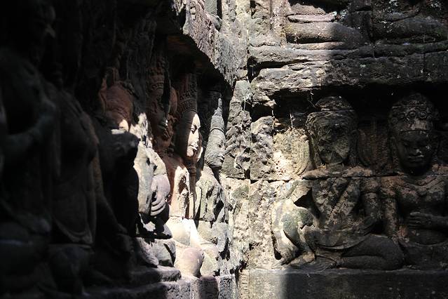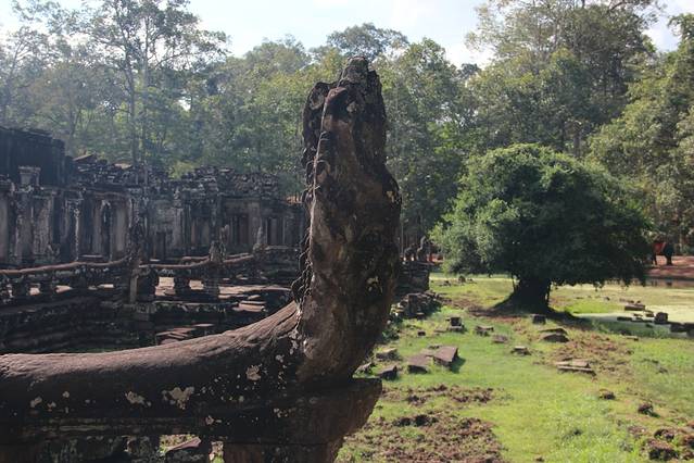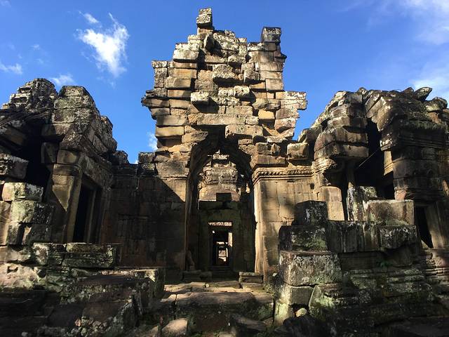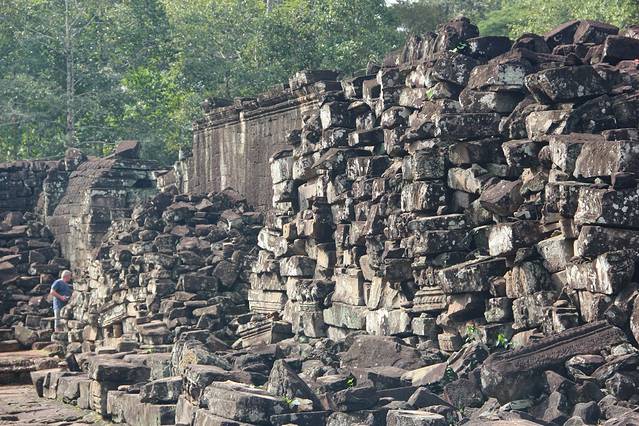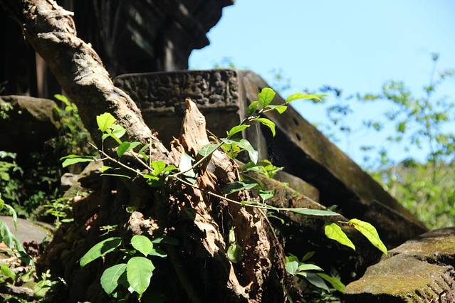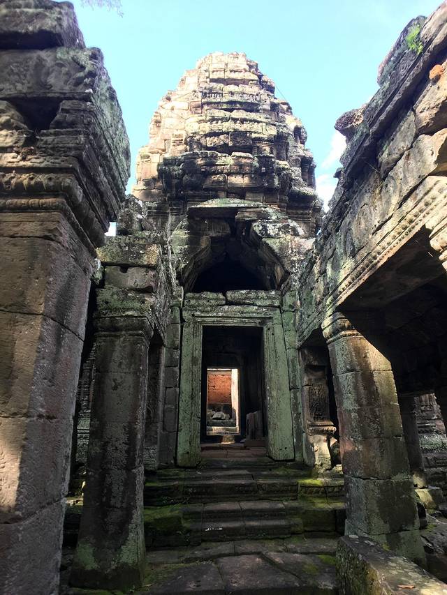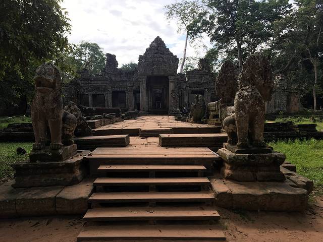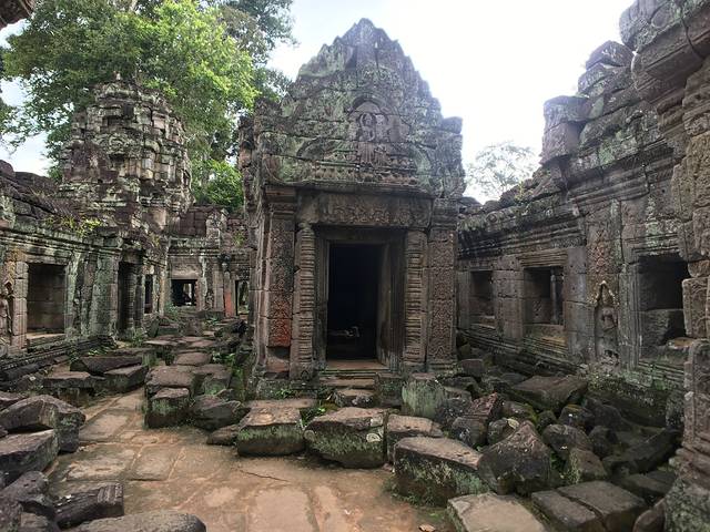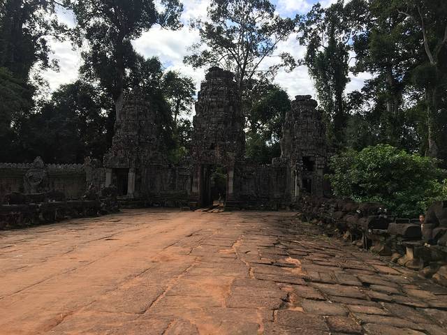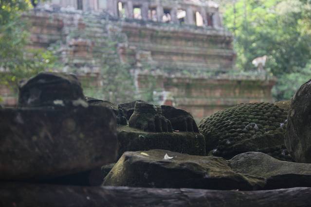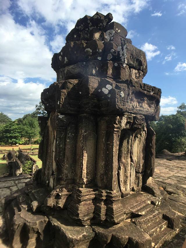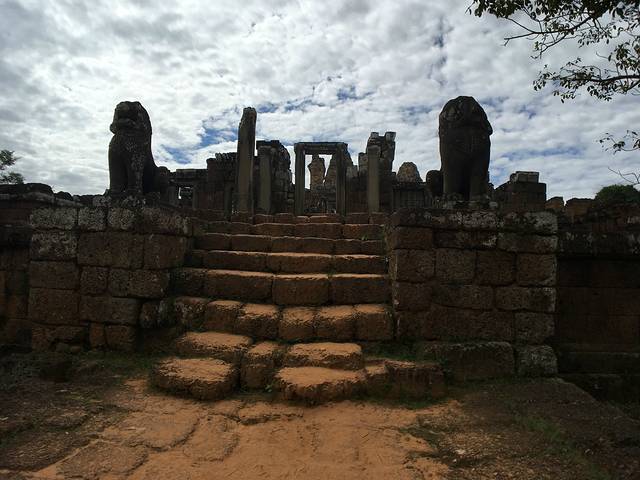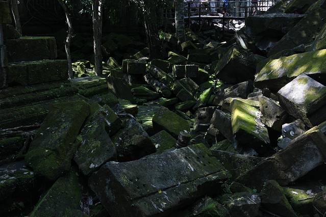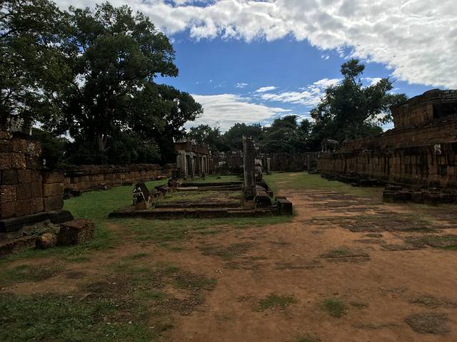 崩密列是我非常喜欢的一个点,因为特别。据说曾经是荷花池,如果是,里三层外三层的,连荷花池都这么讲究,真是个矫情的君王。而今崩塌成为了一个个石头,长满了苔藓,在阳光从树丛中露出斑驳的疏影下竟然焕发出一种盎然的光彩,废墟中的生机无能为力的躺在每一个角落。我喜欢“崩密列”这个翻译,感觉非常的形象,这里确实是崩了,一个个的石头本来是杂乱的排列,在古树中间,伴着一点点的鸟鸣,却形成了一种特殊的美。