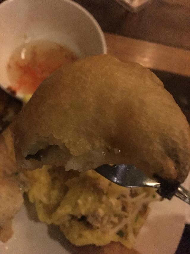 这个炸物很可口,大致叫什么NUM KRUCK,有点像炸鲜奶,但是里面不甜,但软而可口。不知道啥子做的,在接头小摊上也有。