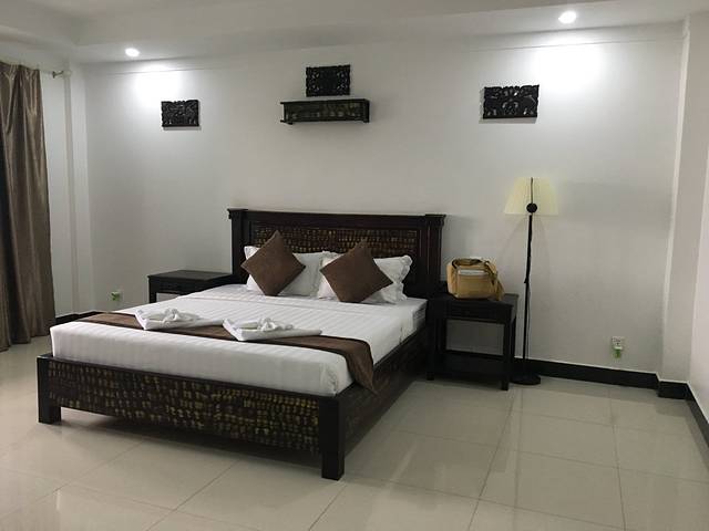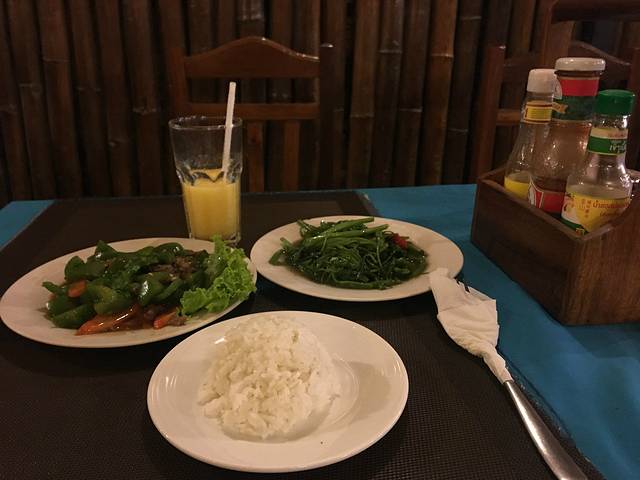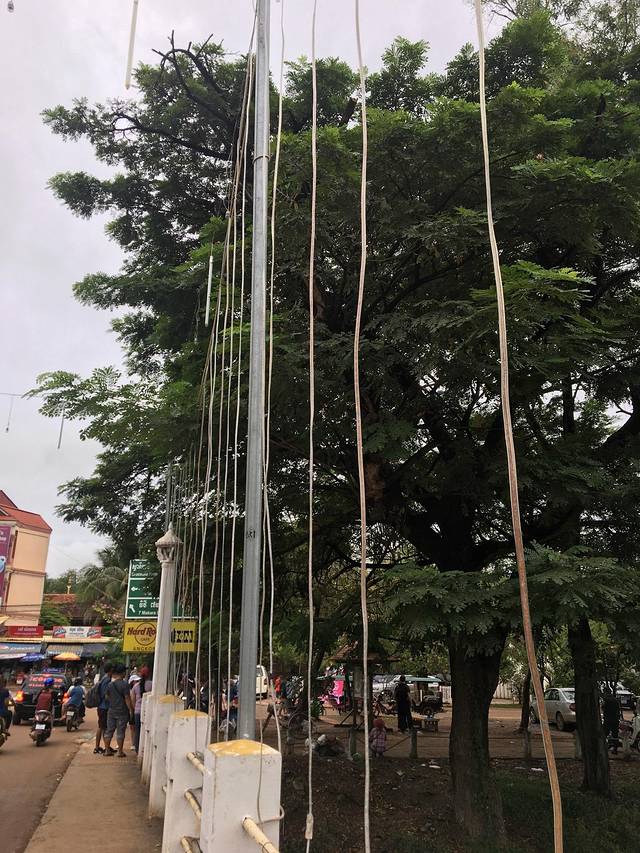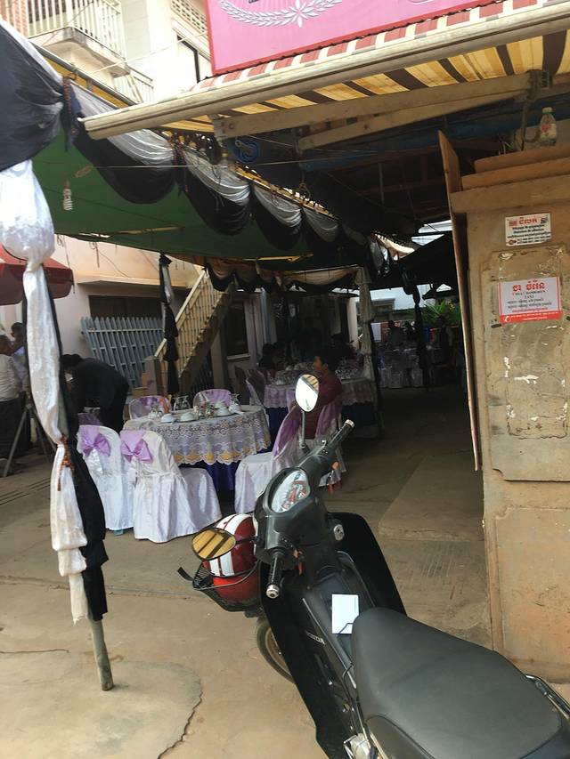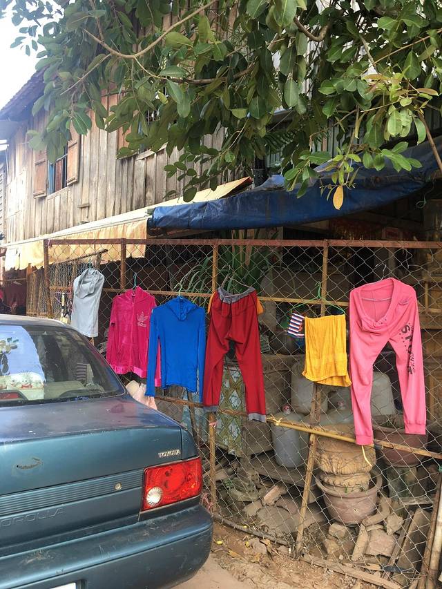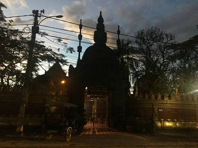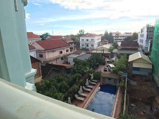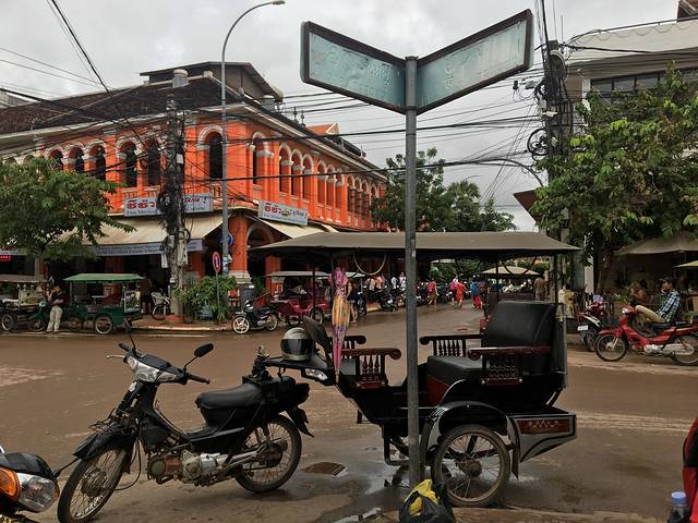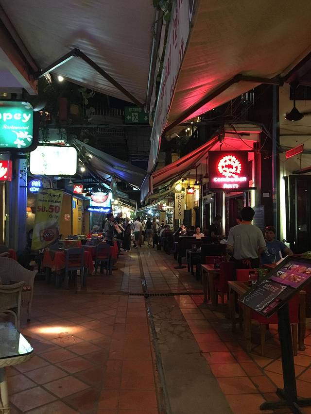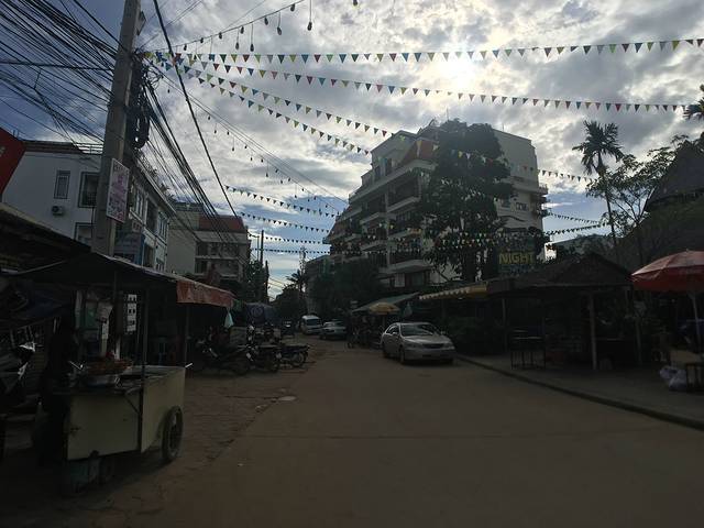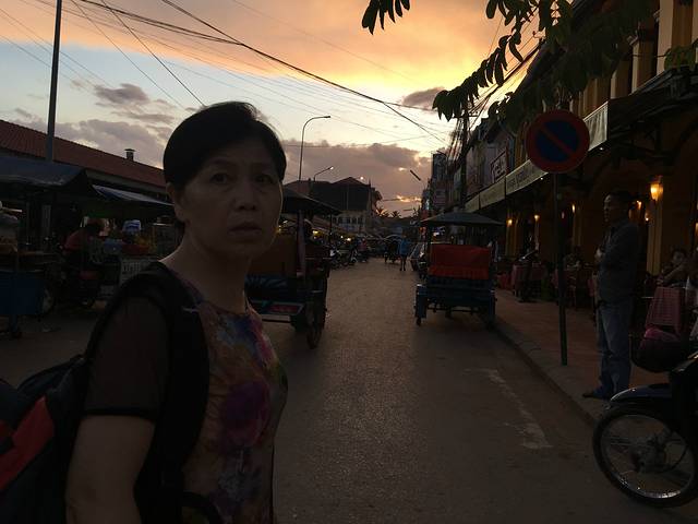 走着走着Pete突然说他车坏了,听到咣当咣当声,竟然在路边找了个friend,说让他送我们去酒店。他的朋友是个中年男子,逐渐由主路走向小道,人烟减少,感觉不妙。老妈怕其中有诈,我打开一个很好的离线app:柬埔寨地图,倒也没有偏离目的地。最后三四米宽的小道上又逐渐出现了一些没人气的小饭馆、小酒吧,而后我们就到酒店了。