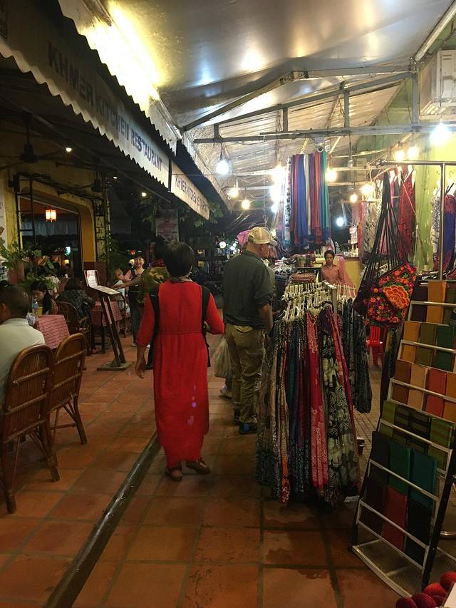还有夜市一条街。这里的夜市没有那么喧嚣,小贩们静静摆着一些看上去质地更优良的商品等着游客前来。在吴哥的最后一夜,其实我也觉得待的够久了,缘尽还有些难舍,可是实在也是该回家了。