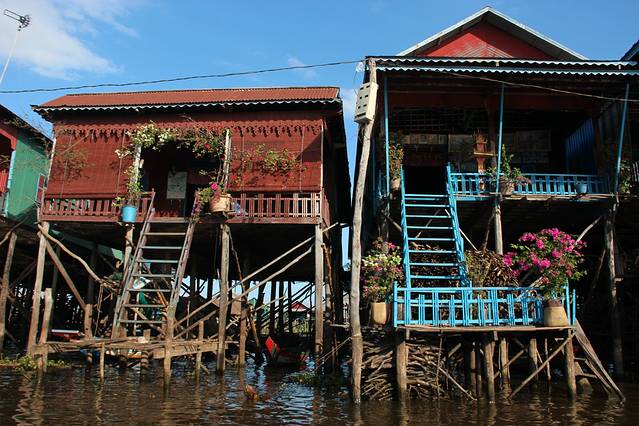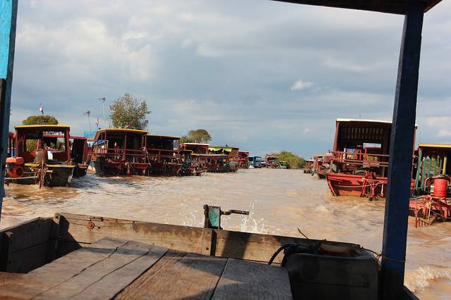 三点从巴孔寺出来,问Pete为什么这里用这么大的石头。pete说是开山依山而建,大石头都是用大象运输上去的,这样其实比小小的砖头砌成的建筑更好做一点。而后就是要去洞里萨湖了。