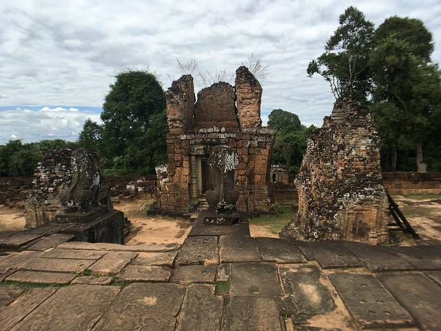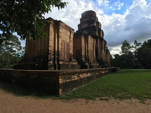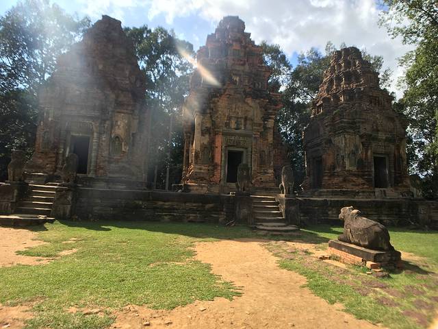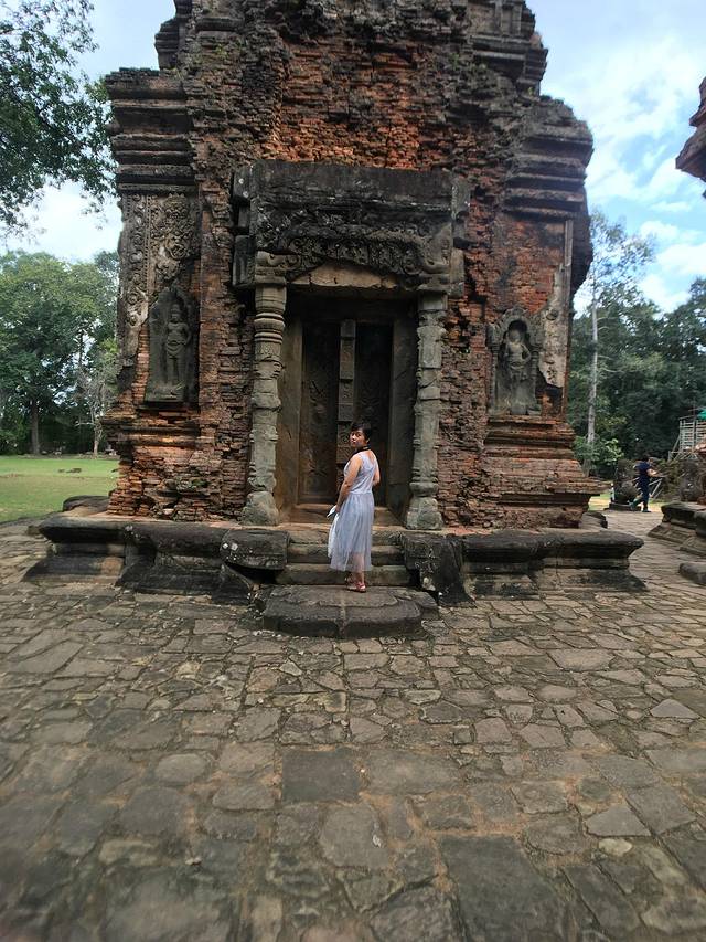 科普:罗洛寺群被认为是高棉艺术的开端,也是古老的高棉文明Hariharalaya的中心。它位于暹粒市东南方约12公里的地方,分为三处遗迹:巴公(Bakong)寺、罗莱(Lolai)寺和神牛(PreahKo)寺。 罗洛寺群在公元9世纪的吴哥王朝时期建成。阇耶跋摩二世开创了吴哥时代,公元850年,由于食物和军事防御的需要,迁都到罗洛寺群,并且人们普遍认为他的继任者也在那里。 巴空寺是罗洛士遗址群中规模最大并且是最重要的庙宇,曾经是城市的中心。其建筑风格传承了印尼的婆罗浮屠特色影响,主要用来供奉林迦;罗莱寺是阇耶跋摩二世迁都吴哥前的最后一个主要庙宇,里面供奉的是湿婆林迦,建在高棉历史上第一个人工池中央的一个小岛上,现水池已干涸,成为稻田;神牛寺,是罗洛士遗址群中第二大的建筑物,从庙宇底部开始的高台基上,筑起6座刻有梵文的高塔,用来供奉湿婆和国王的祖先。