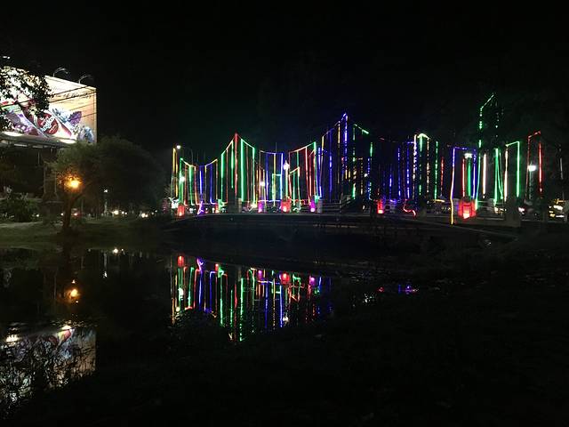 桥上的彩灯白天竟然是难看的灯线,在离开的最后一天晚上终于看到了五颜六色的夜景,差别还是挺大。