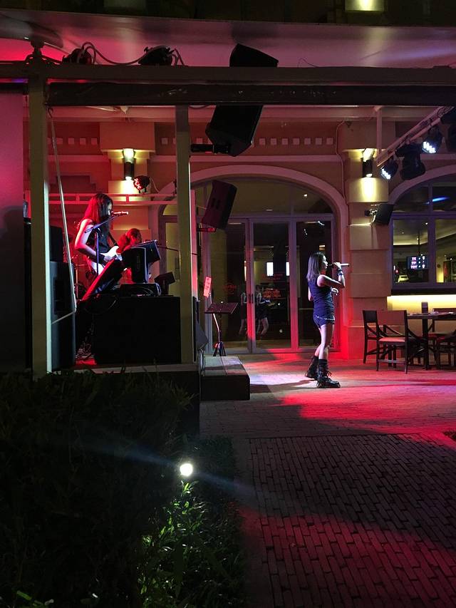 吃完循着很大的声音去了,原来河边的酒吧现场驻唱歌手开嗓。风格就如其酒吧名,是hard rock,有点什么土星安娜的风格,后来玛丽亚的高音飙到了千里之外。