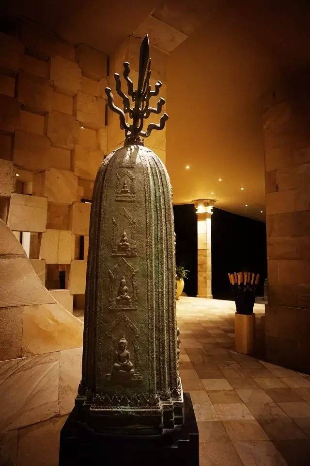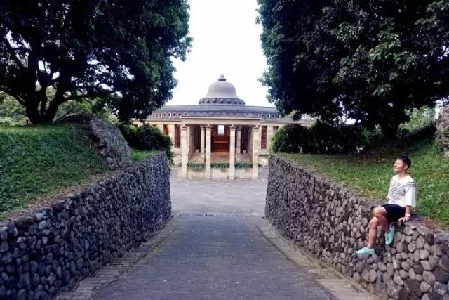 层层圆形的外形,窣堵波造型的顶端,与婆罗浮屠的结构,遥相呼应,如梯田一阶一阶连到平原上的农田,外围又有一圈莲花池环绕。