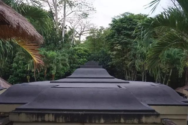下了车,雨也停了,我让车开至大堂放下行李,而自己提前下车,顺着被葱茏树木的掩藏,走过一排石灰岩筑成的高墙,AMANJIWO的模样慢慢儿出现在了眼前。