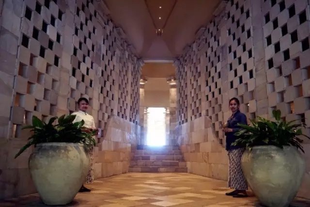 这座宫殿的墙面交错镂空,用菱形砖墙的效果让我仿佛住进了婆罗浮屠之中。
