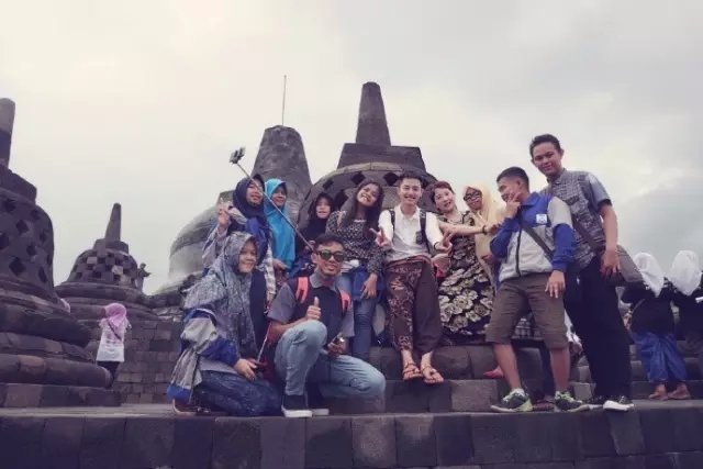 所以在这儿,最多的还是印尼当地的游客,裹着头巾一身黑衣的女孩们,和露着朴实笑容的男孩,看到我这远方来的稀客,争着抢着和我合影,乌鸦般包裹的外套压抑不住嬉闹的快乐。