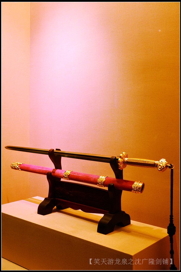 “辟邪剑”、“金龙剑”、“八仙剑”、“越王剑”……,徐步行走,“七尺”柄柄,琳琅满目,令人应接不暇。展锋若是,寒光萧萧,剑鞘以封,龙雀鸟首。有的素淡,自有“纯钧”之纯,有的精悍,意在“鱼肠”之锋,有的鲜亮,不输“七星龙渊”,有的雅沉,若然“湛泸”之仁……