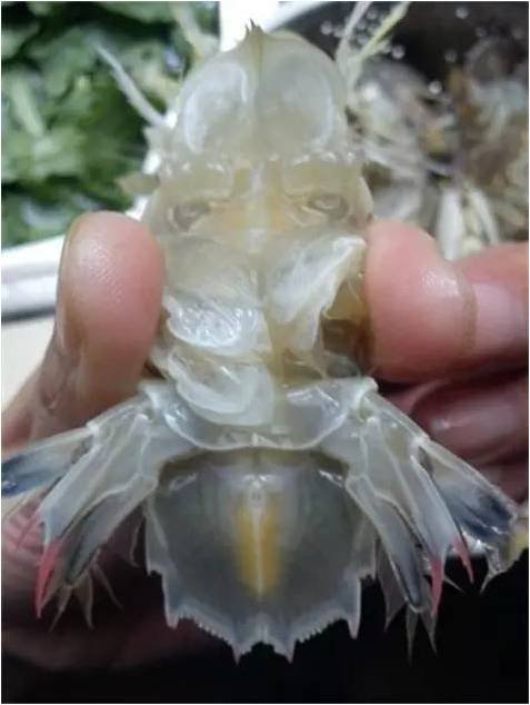 三(中黄):母虾姑带膏一般肚子成中间黄色。