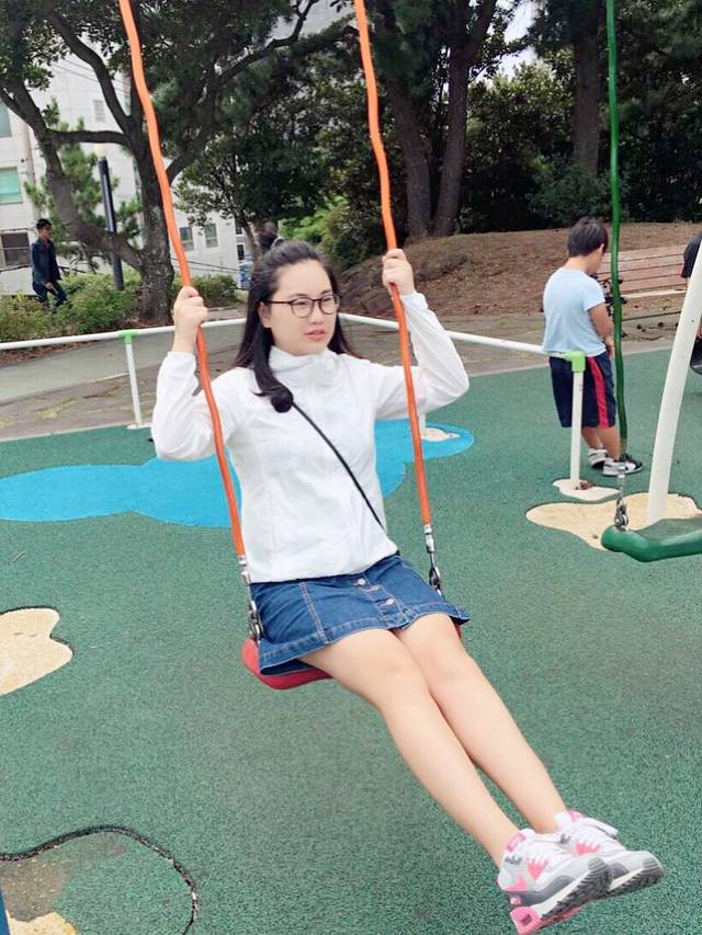 偶遇一个小公园,这个秋千,我可以这样玩儿一天