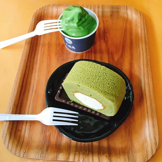 绿茶咖啡馆的吧台前也排起了长队,大部分都是来点绿茶冰淇淋和绿茶蛋糕的,味道很浓郁。其实跟在南京路悦诗风吟旗舰店迟到的味道差不多,呵呵呵