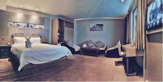 办理好入住打开房门插卡取电,客房相当宽敞、明亮舒适,客房内的设施一应俱全,慕斯床垫、卫星电视、Wifi上网系统、进口电子保险箱、电子磁卡门锁系统、可调式中央空调、大屏液晶电视、迷你冰箱、舒适的座椅等等,不会整个人陷在里面没有支撑,也没有硬邦邦的感觉,一切自然舒适。