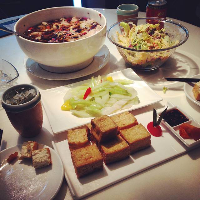 懒得到处找了,酒店前台推荐了楼下一家石磨豆腐坊,说有海鲜