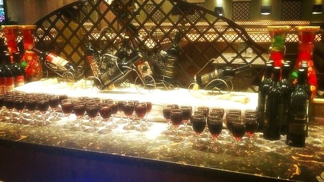 菜品种类还行吧,不过没有皮皮虾,飞蟹是死的,有活的河蟹,就是个头..还能再小点么,大蛤和扇贝吃的很爽,涮肉也不错,每人送一只鲍鱼。不足的就是每个菜品都没有名字。。。。拿鱼片的时候很纠结,根本不知道自己吃的是什么鱼,所以根本放弃了,免得浪费。。有红酒和啤酒,不过没喝,估计自助里的酒一定不怎么样,还是吃吧