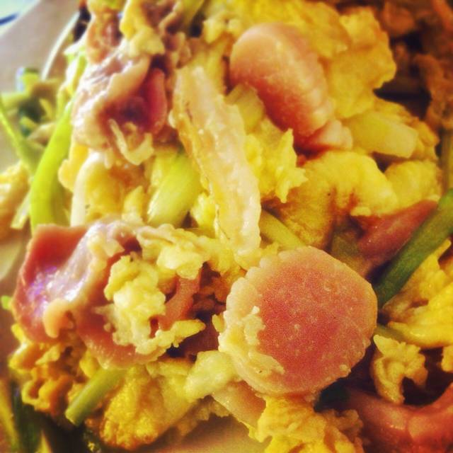 我们去的时候已经9点了,海鲜说是特价,扇贝10块钱一个,个头一般手掌那么大吧,肉很多挺肥的