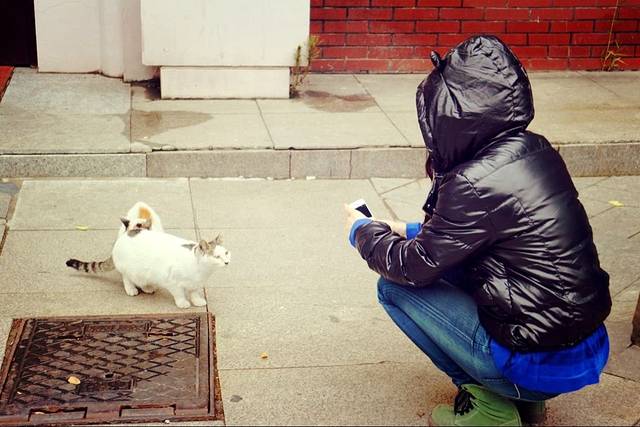 很快就溜达完了,没什么意思,逗了逗街边的流浪猫,这么冷的天好可怜。。