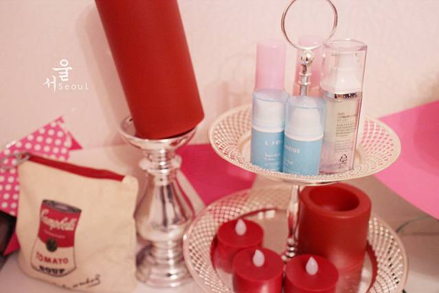一楼上二楼的楼梯间还设置了梳妆台,任何人都可以用这里的化妆品