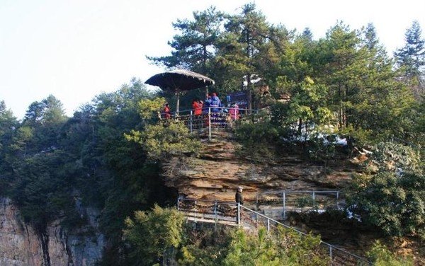 3. 天子山门票站:最大优势是可以坐环保车直接上到山上三岔口停车场,离丁香榕村很近。可以安排好住宿再去游览。比较适合带老人、小孩、体力不好的人选择。可以先把山上景点看完,在下山游山下景点。