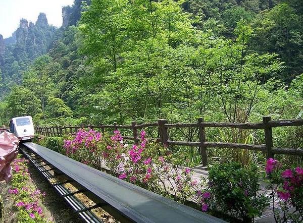 水绕四门处可以坐环保车去百龙天梯,百龙天梯上去是袁家界景区。也就是第一天体力不行走完金鞭溪的游客的选择,也是团队游的路线。说明一下:百龙天梯号称十分壮观,只是外观而已,坐上去跟大城市普通的观光电梯一回事。却需要花费72块。另外要说明的是在神兵聚会可以看到百龙天梯全景的。