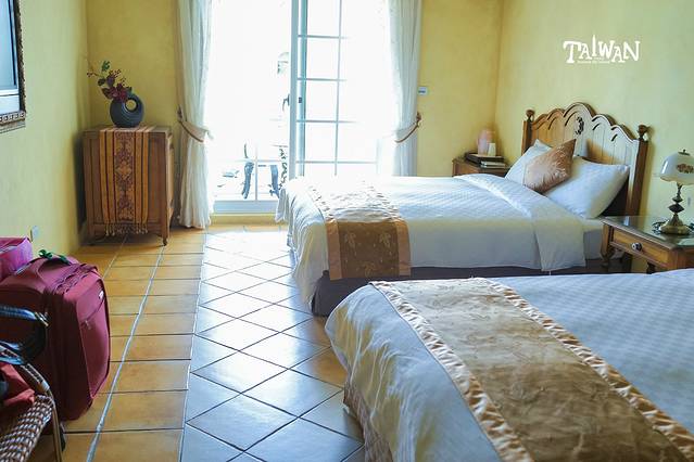 这是一家位于垦丁大街附近的民宿,拐两个弯就到垦丁大街,步行就2分钟,交通便利,房间设施都很齐全,我最喜欢的还是这间民宿的装修风格,那种异国乡村风太棒了,房间既宽敞又别致用心,各种小设计都让我惊喜,老板娘也很热情,是那种给人感觉办事比较利落的人。这家在预订房型的时候也是选择最简单的乡村二人房,当时已经付款了,后来接到度假客工作人员的电话,告知房间没有了,只剩下一间法式阳台四人房,不过民宿老板觉得实在抱歉,如果要预订的话只需要在原本395元的基础上多加40元,就可以享受四人房,想想也是赚到了~